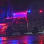 Smoke rose high above a fire sparked by a crash Friday night on Interstate 64 in Woodford County, Kentucky. The family of an