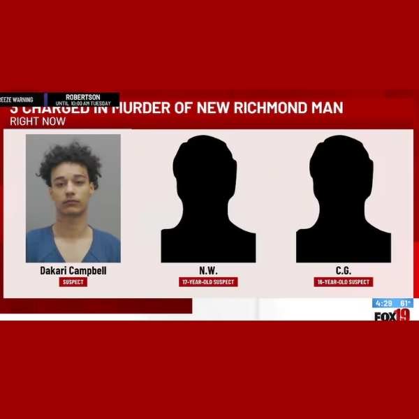 Three people, including two juveniles, have been charged in connection with the killing of a 19-year-old in Clermont County, Ohio, according to the