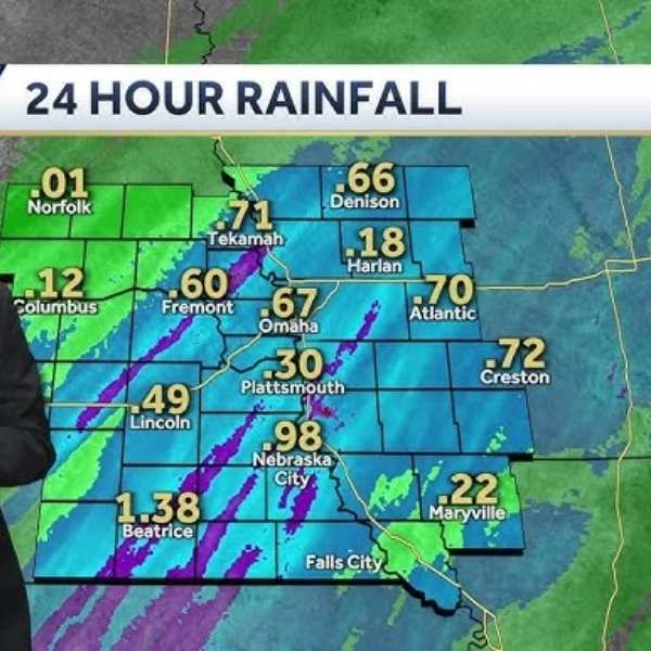 Eppley Airfield recorded just over an inch of rain, while many other locations across Douglas County reported totals closer to 2 inches.